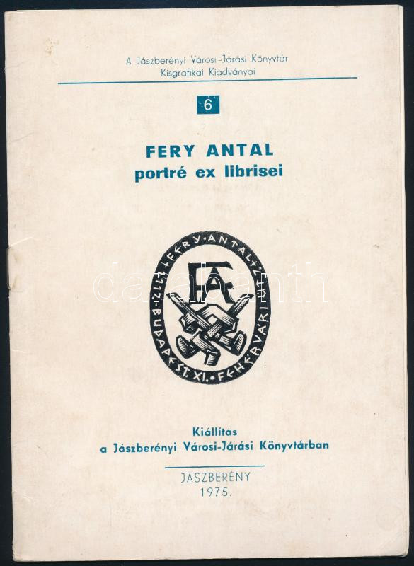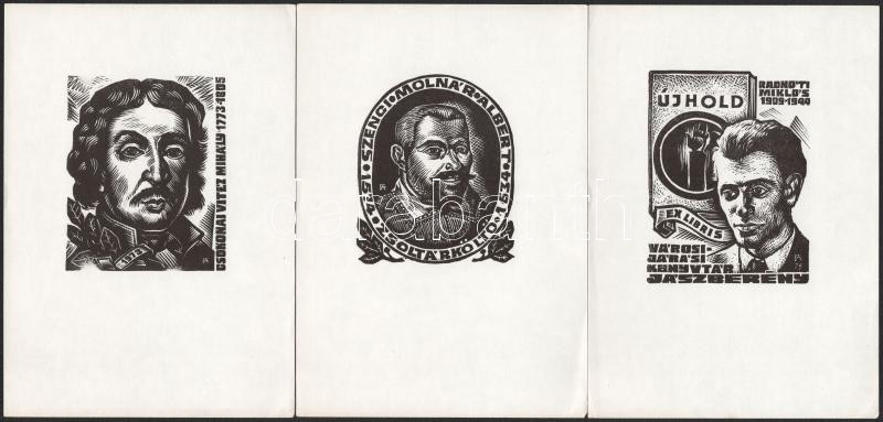 Fery Antal (1908-1994): Fery Antal portré ex librisei. Katalógus és 3 db ex libris (Csokonai, Radnóti és Szenci Molnár Albert arcképével), fametszet, papír. Jelzett a metszeten. 10x7,5 cm körüli méretekben. Kopott borítóval
