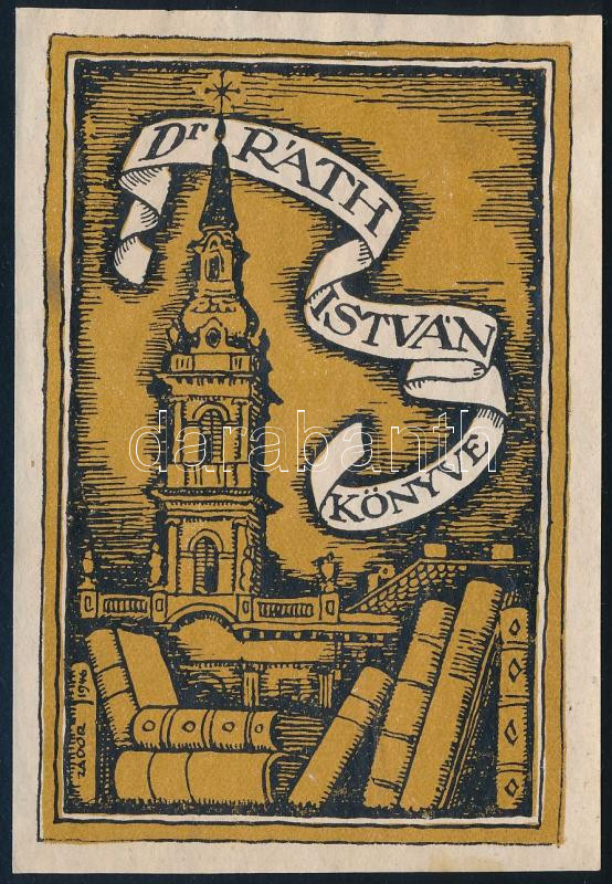 Zádor István (1882-1963): Dr Ráth István könyve, 1946. Fametszet, papír, jelzett a metszeten, 10×6,5 cm