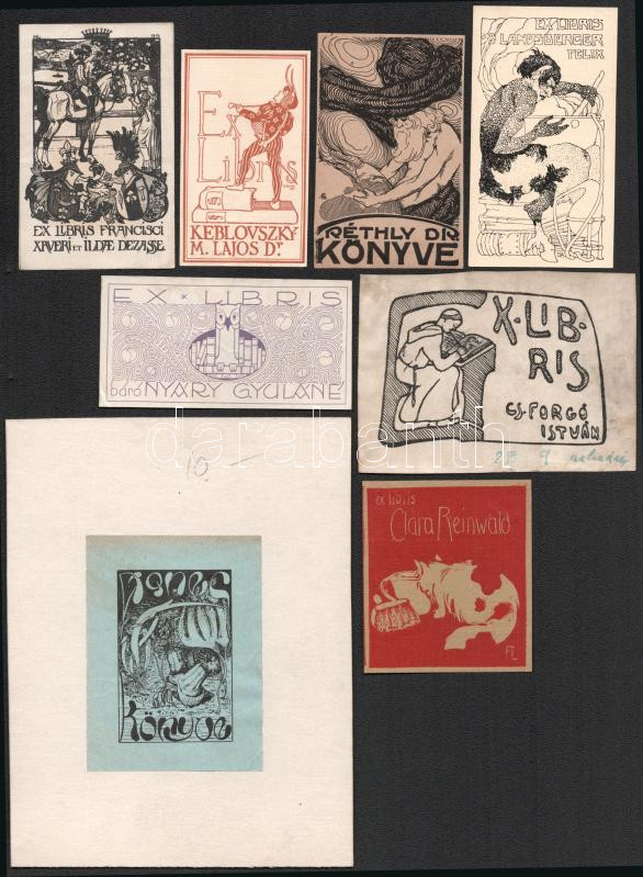 ca 1910-30 8 db szecessziós és art deco ex libris, különböző alkotók és technikák, részben ritka darabok, egyik kissé foltos (korábban beragasztva)