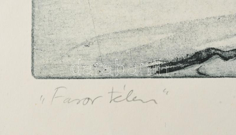Kéri Imre (1945- ): Tél, rézkarc, papír, jelzett, számozott (3/100), lapszéli apró elszíneződésekkel, 20×40 cm