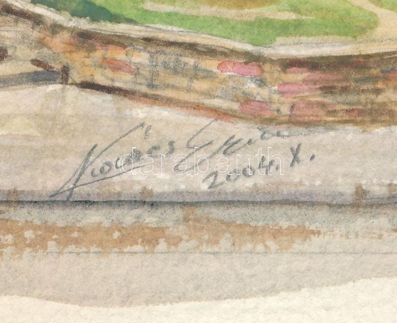 Kovács Ernő (-): Szarvas tér, Budapest, 2004. Akvarell, ceruza, papír. Jelzett. 25×35 cm