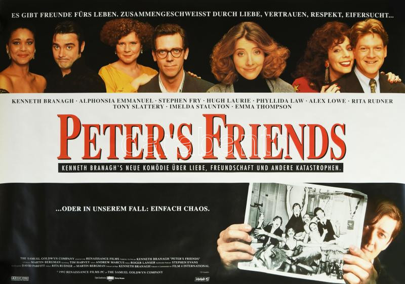 1992 Peter's Friends (Kenneth Branagh, Emma Thompson), német filmplakát, papír, feltekerve, apró lapszéli gyűrődésekkel, 84x119 cm