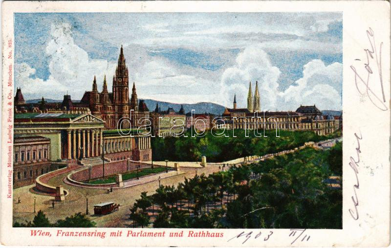 1903 Wien, Vienna, Bécs; Franzensring, Parlament, Rathaus. Ludwig Frank & Co. / parliament building, town hall, church, university, theatre, park, tram