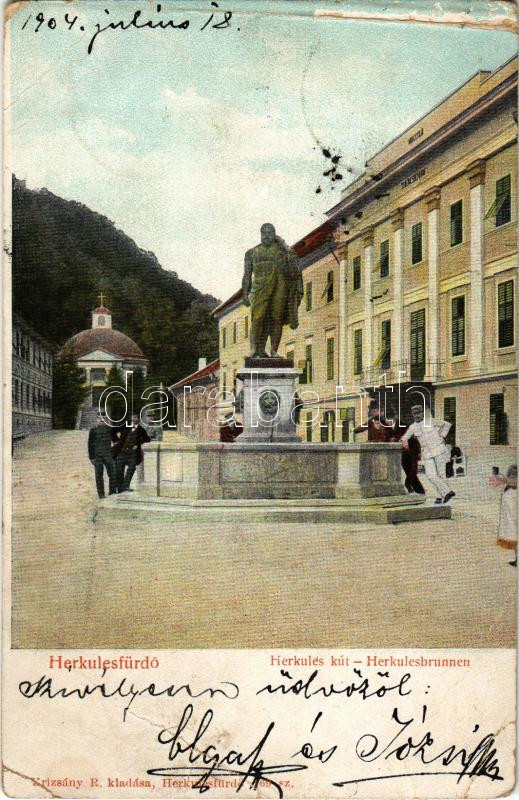 1904 Herkulesfürdő, Baile Herculane; Herkules kút. R. Krizsány kiadása / Herkulesbrunnen / well, fountain (EB)