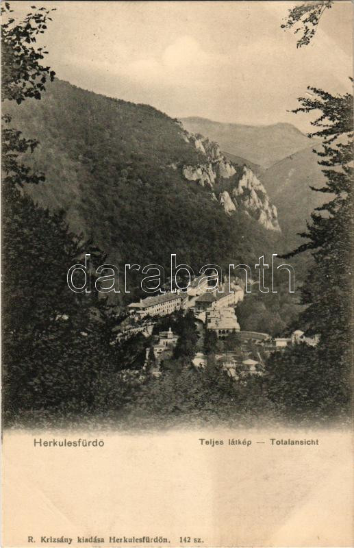 1904 Herkulesfürdő, Baile Herculane; Teljes látkép. R. Krizsány kiadása / Totalansicht / general view