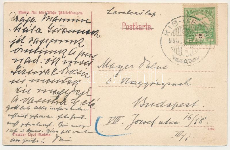 1908 Kisjenő, Chisineu-Cris; Főhercegi kastély a kegyúri templommal. Messzer Lipót kiadása / castle, church (kis szakadás / small tear)