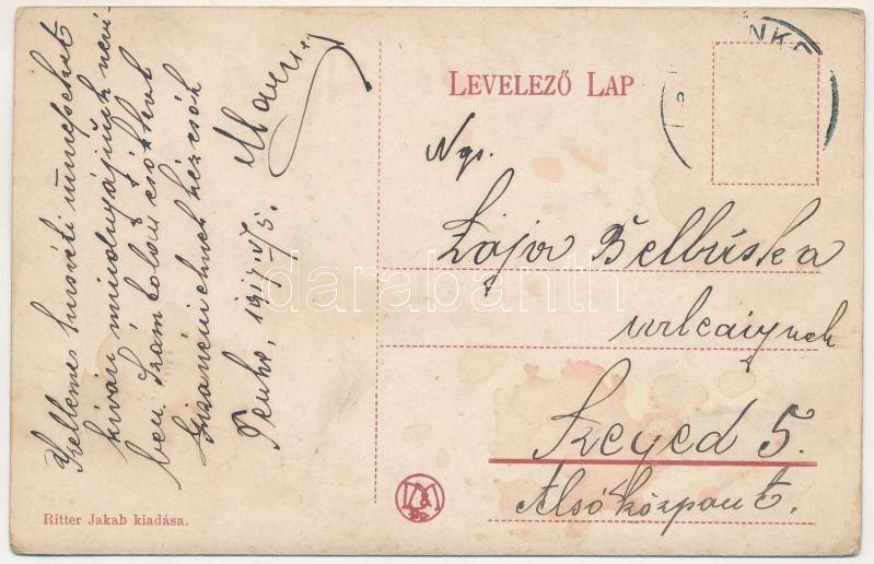 1917 Tenke, Tinca; Árpád utca, Samu üzlete. Ritter Jakab kiadása / main square, street, shops (felületi sérülés / surface damage)
