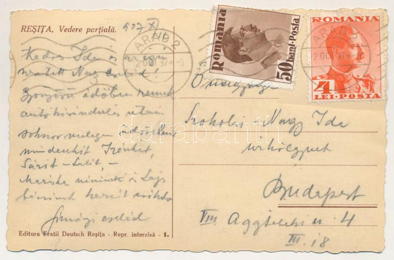 1937 Resicabánya, Resicza, Recita, Resita; Vedere partiala / Vasgyár, Kohó és vasöntöde. Deutsch Testvérek kiadása / ironworks, factory, blast furnace, iron foundry (b)