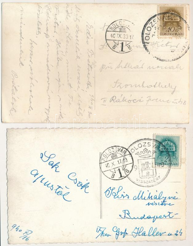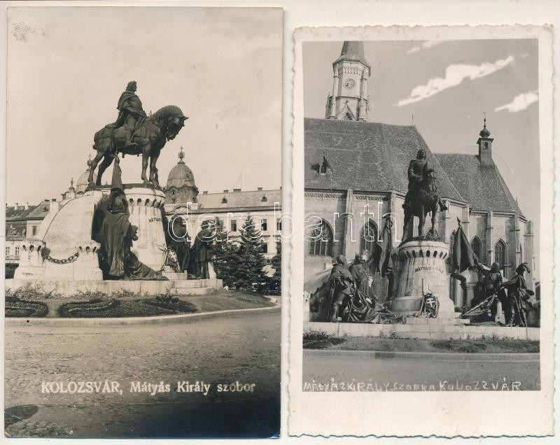 Kolozsvár, Cluj; Mátyás király szobor / statue, monument - 2 db RÉGI képeslap / 2 pre- 1945 postcards + "1940 Kolozsvár visszatért" So. Stpl.
