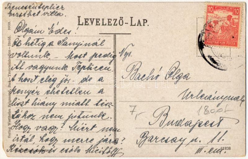 Trencsénteplic, Trencianske Teplice; I. számú fürdő, kénvíz ivócsarnok. Wertheim Zsigmond kiadása / Bad Nr. I. Schwefelwasser-Trinkhalle / spa, bathhouse (EM)