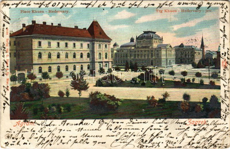 1901 Zagreb, Zágráb; Khuen-Héderváry tér / square. G. Rüger & Co. Auto-Chrom (EB)