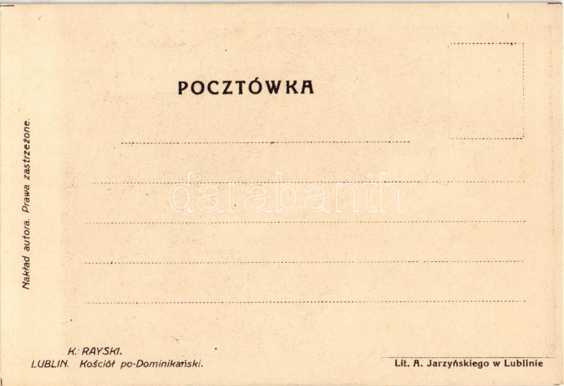 Lublin, Kosciol po-Dominikanski / church. Lit. A. Jarzynskiego litho s: K. Rayski