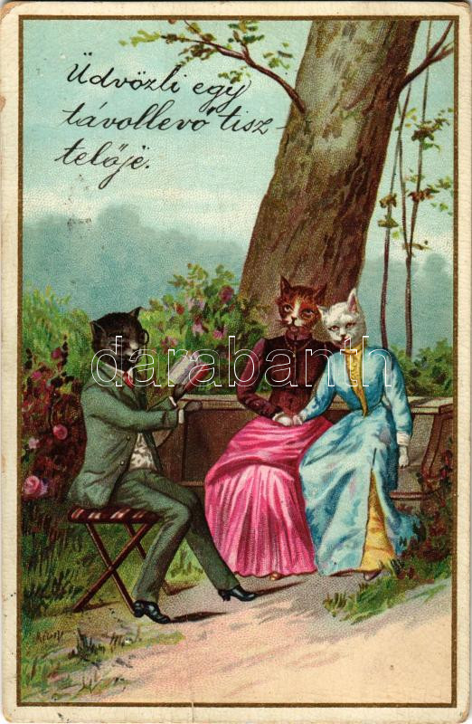 1899 Cat gentleman and cat ladies. litho (EB)