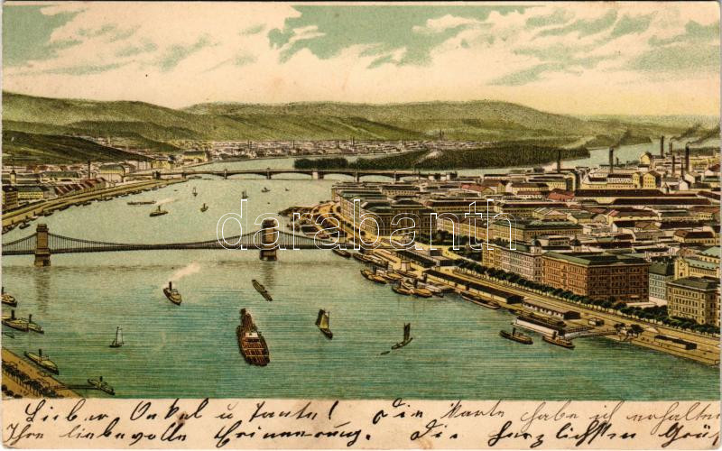 1901 Budapest, látkép, Lánchíd, Magit híd, Margitsziget, gőzhajók