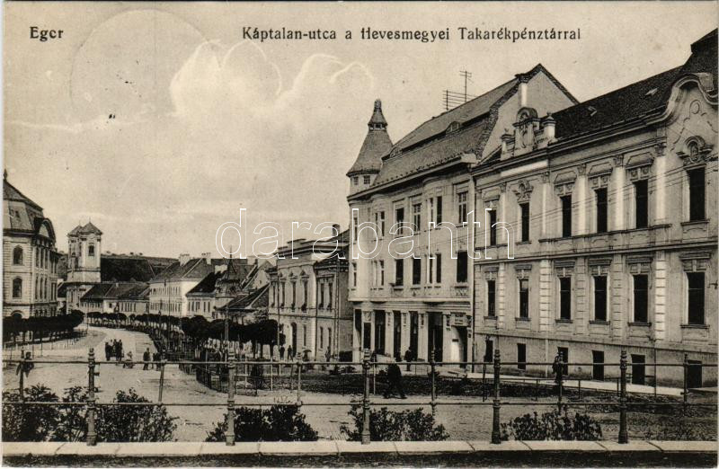 Eger, Káptalan utca a Hevesmegyei Takarékpénztárral