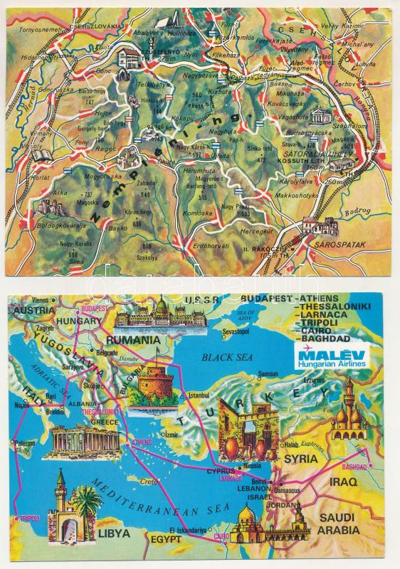 12 db MODERN térképes képeslap / 12 modern map postcards