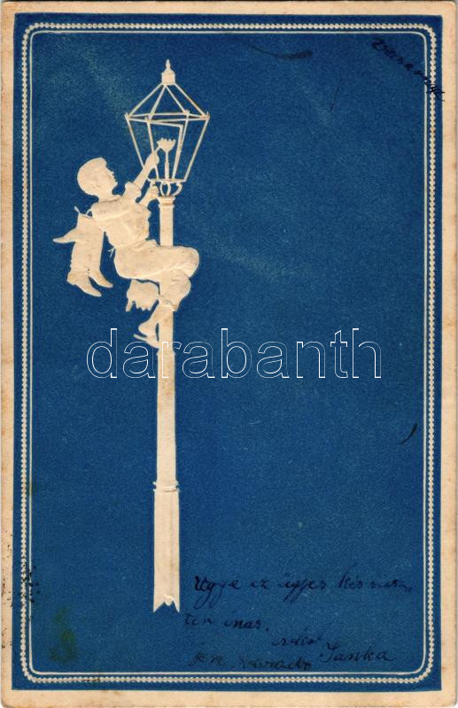 1900 Lámpagyújtó. Dombornyomott / Lamp lighter. Emb. (fl)