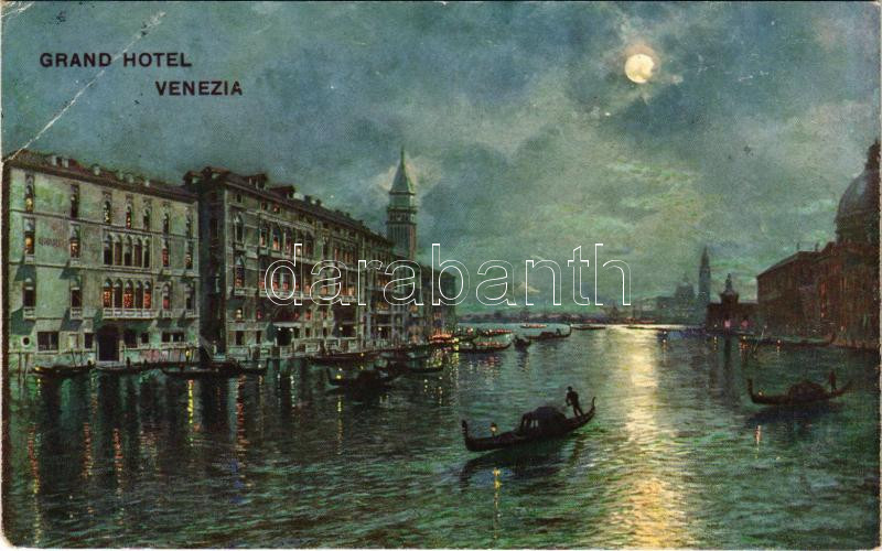 1910 Venezia, Venice; Grand Hotel Venezia at night in moonlight (EB)