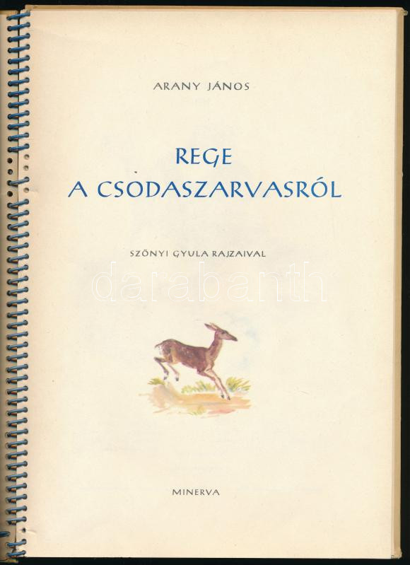 Arany János: Rege a csodaszarvasról. Szőnyi Gyula rajzaival. Bp., 1959, Minerva. Spirálozott kartonált kötés, kissé kopottas állapotban.