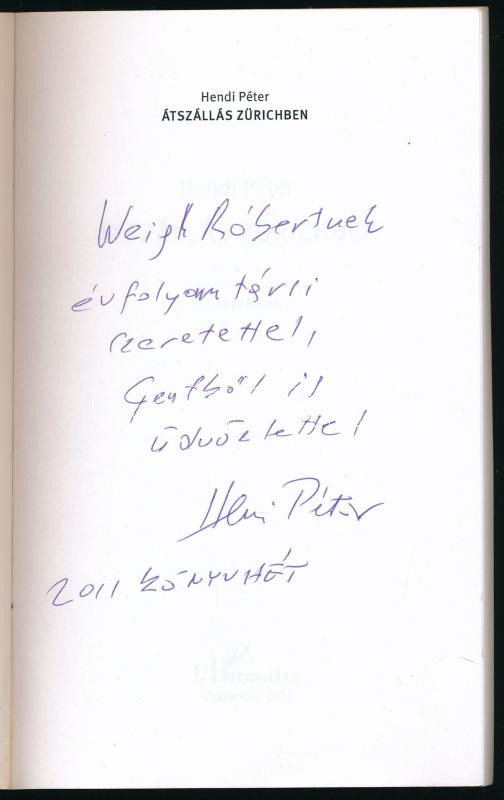 Hendi Péter: Átszállás Zürichben. Elbeszélések. DEDIKÁLT! Bp., 2011, L'Harmattan. 193p. Papírkötésben, jó állapotban.