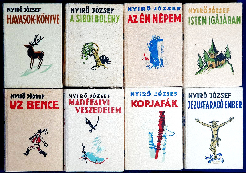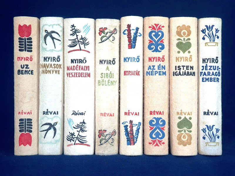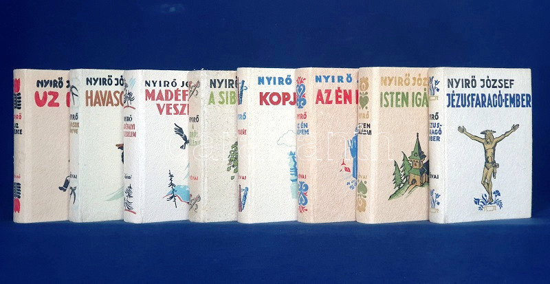 Nyolc kötet Nyirő József munkáiból, a Révai Testvérek által gondozott, egységes, illusztrált halinakötéses kiadásváltozatból, Végh Dezső, Toncz Tibor és Enyvári Herbert színes rajzaival.