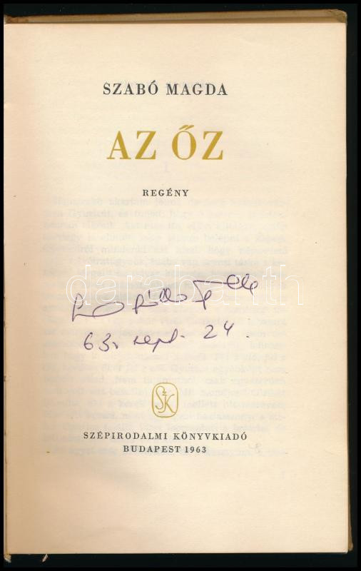 Szabó Magda: Az őz. ALÁÍRT! Bp., 1963, Szépirodalmi. Félvászon kötés, kissé kopottas állapotban.