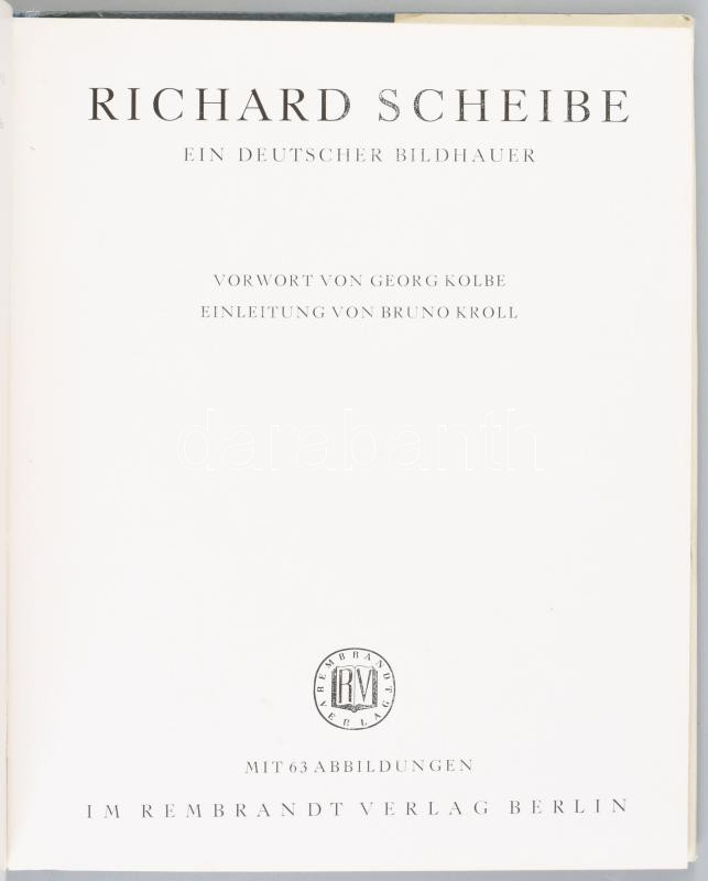 Richard Scheibe. Ein Deutscher Bildhauer. Vorwort von Georg Kolbe. Einleitung von Bruno Kroll. Die Kunstbüchr des Volkes / Kleine Reihe Band 1. Berlin,én.,Rembrandt, 63+1 p. Német nyelven. Fekete-fehér képanyaggal illusztrált. Kiadói félvászon-kötés, szakadt, foltos, kissé kopott kiadói papír védőborítóban.