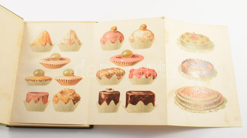 Hegyesi József: A legujabb házi czukrászat kézikönyve. Bp., 1893., Szerző - Czettel és Deutsch-ny., 1 (színes, kihajtható címkép) t. + 247 p.