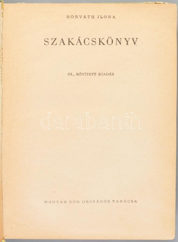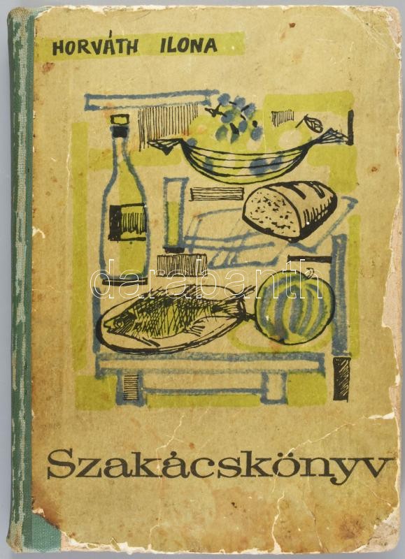 Horváth Ilona: Szakácskönyv. [Bp., 1963], Magyar Nők Országos Tanácsa, 388+[2] p. Harmadik, bővített kiadás. Kiadói félvászon-kötés, viseltes, sérült, foltos borítóval, egy-két sérült lappal.