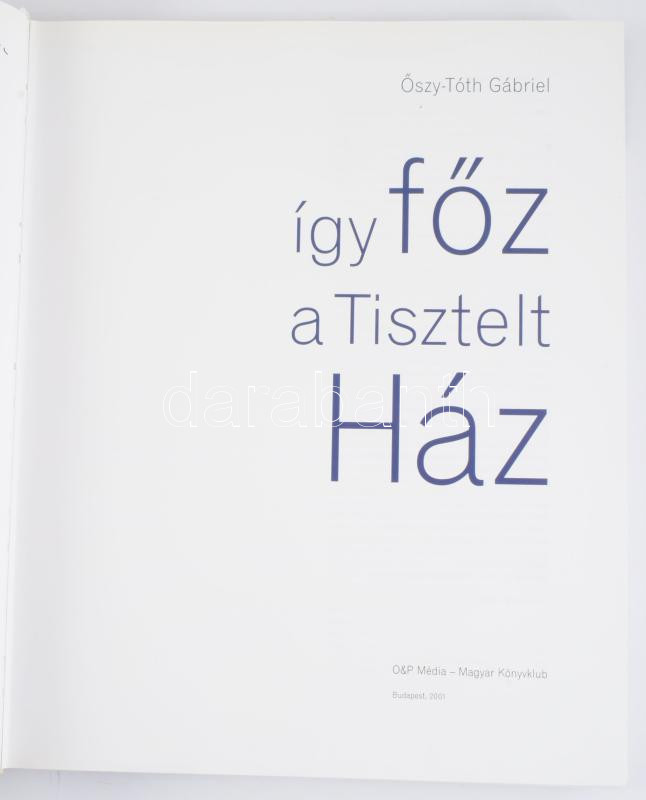 Őszy-Tóth Gábriel: Így főz a Tisztelt Ház. Bp., 2001, O&P Média. Kiadói kartonált kötés, papír védőborítóval, jó állapotban. Dömötör Zoltán (1935-2019) olimpiai bajnok vízilabdázó, úszó részére részére DEDIKÁLT példány. Bp. (40)p. Kartonált papírkötésben