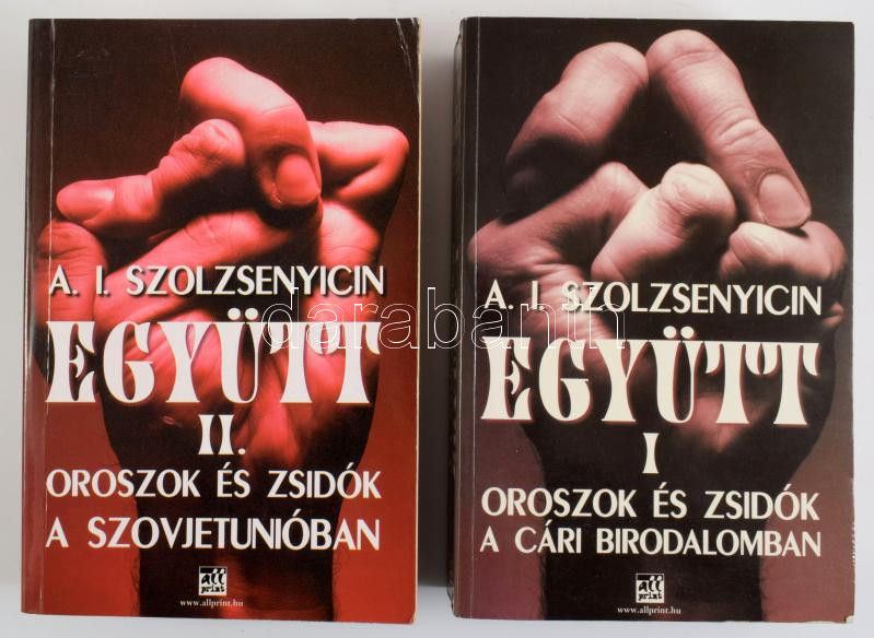Szolzsenyicin, Alekszandr Iszajevics: Együtt I-II. köt. I.: Oroszok és zsidók a cári birodalomban. II.: Oroszok és zsidók a Szovjetunióban. Bp., 2004-2005, Allprint, 633+[7] p.; 574+[2] p. Kiadói papírkötés.