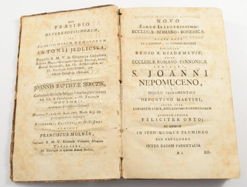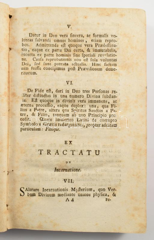 [Benedek XIV., pápa] Benedictus XIV.: Epitome doctrinae moralis et canonicae ex constitutionibus aliisque operibus. Tyrnaviae, 1766, Typis Academici Soc. Jesu, 22+308 p. Latin nyelven. Korabeli kartonált papírkötés, kopott borítóval, a 307. oldalnál a hátsó tábla és az utolsó lap levált, foltos lapokkal, hiányzó elülső szennylappal, a kötéstáblák belsején, az utolsó lapon, és a hátsó szennylapon bejegyzésekkel.