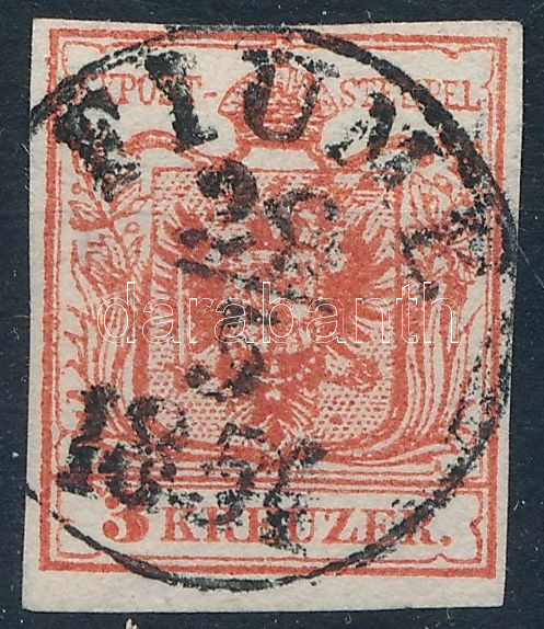 1850 3kr HP III intenzív szín "FIUME 1854"