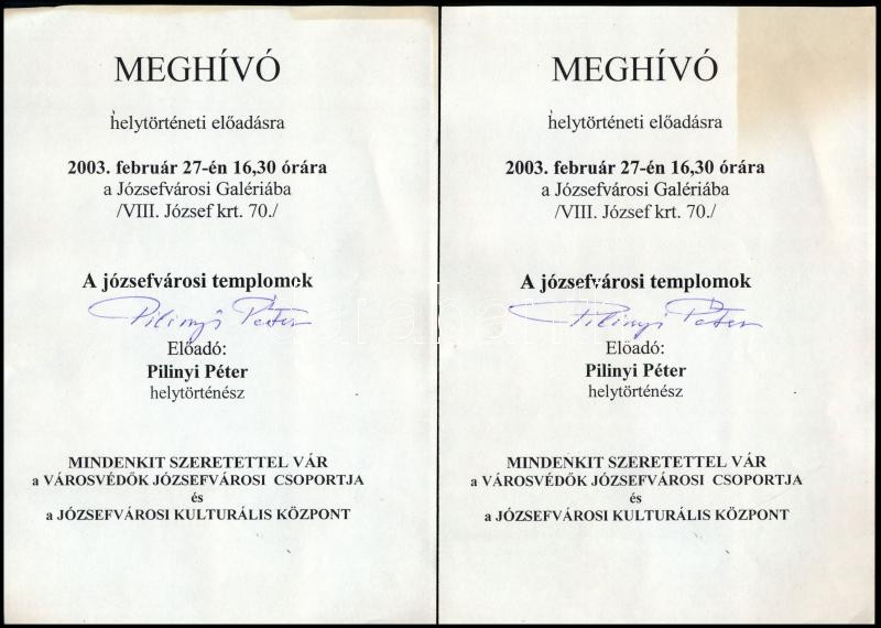 4 db Józsefvárosi Galéria meghívó/prospektus, mindegyiken Pilinyi Péter helytörténész, író aláírásával