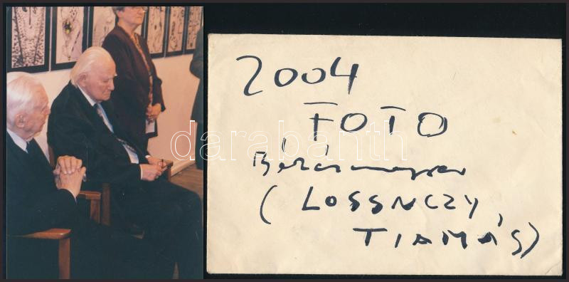 Lossonczy Tamás (1904-2009) Kossuth-díjas festőművész, grafikus által dedikált boríték, eredeti fotójával