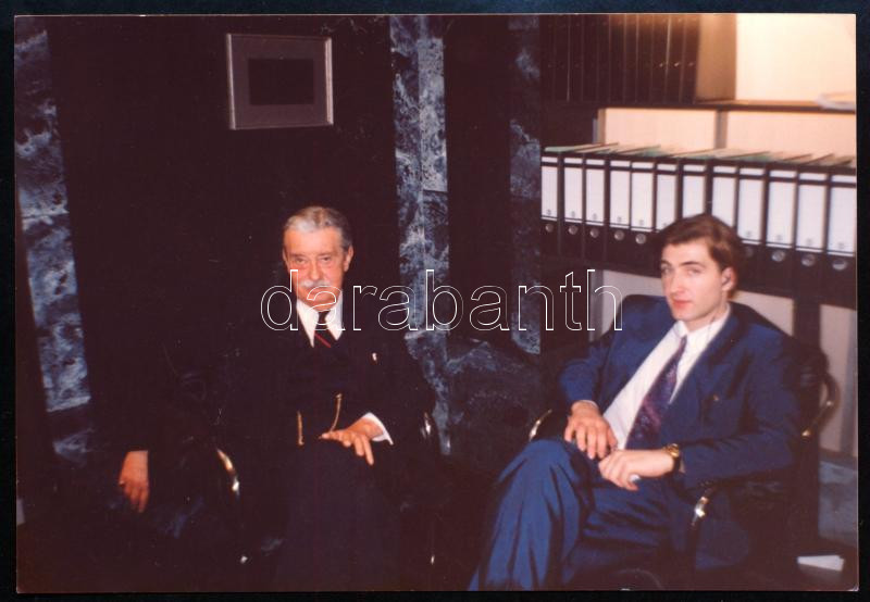 Mensáros László (1926-1993) színész autográf aláírása őt ábrázoló fotón, 8,5x12,5 cm