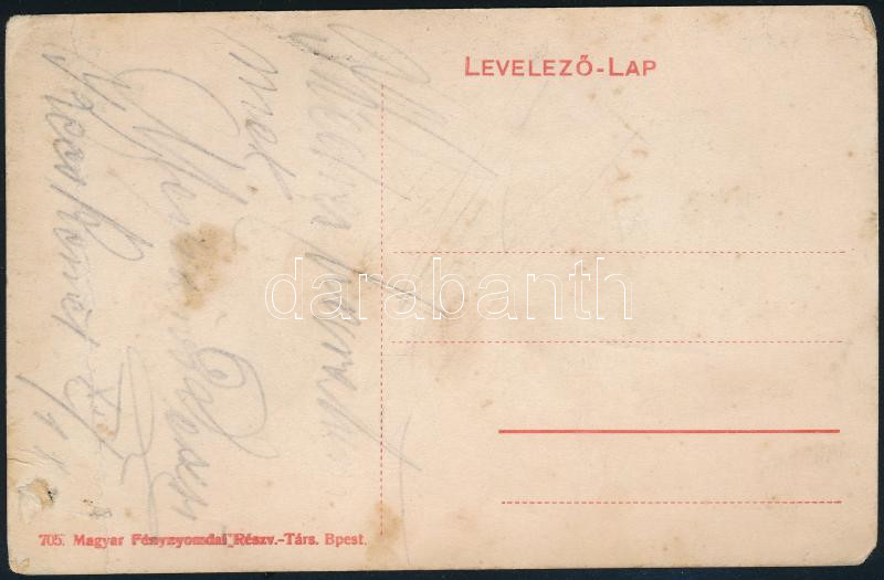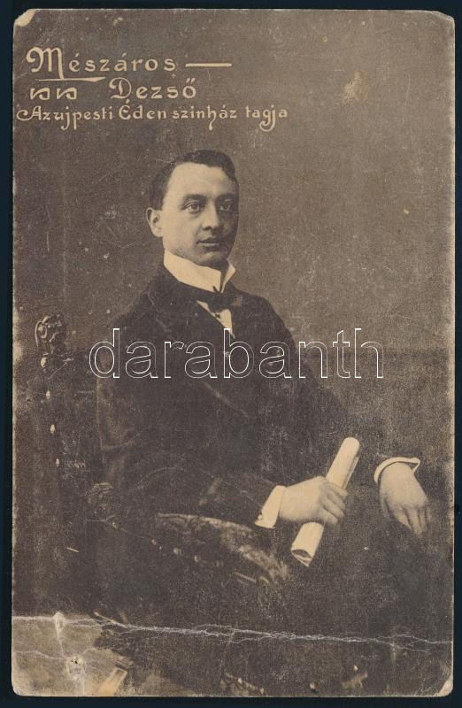 Mészáros Dezső aláírt képeslapja, törésnyomokkal