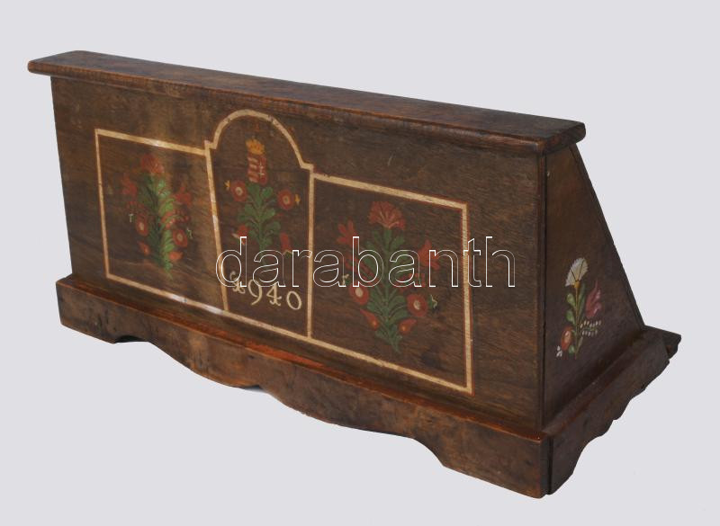 1940 Datált, festett könyvtartó, könyvolvasó, kissé laza résszel, 27x13 cm