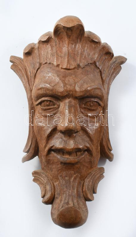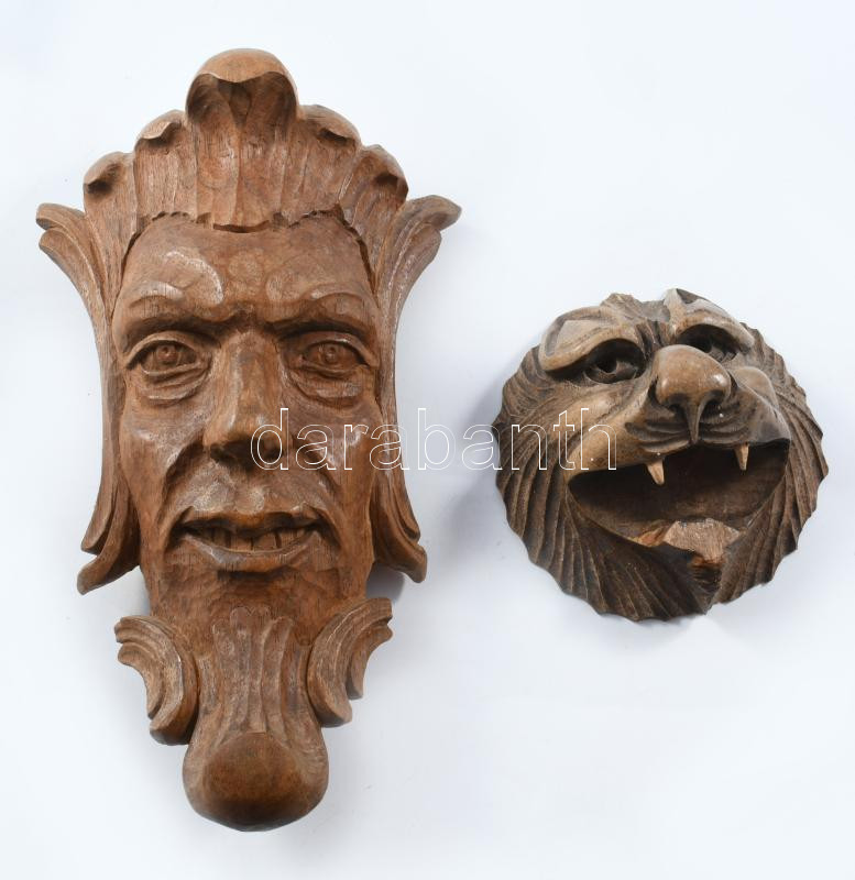 2 darab faragott fa maszk, m: 19 cm alatt