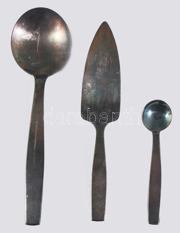 3 darab ezüstözött szervírozóeszköz, h: 21 cm alatt