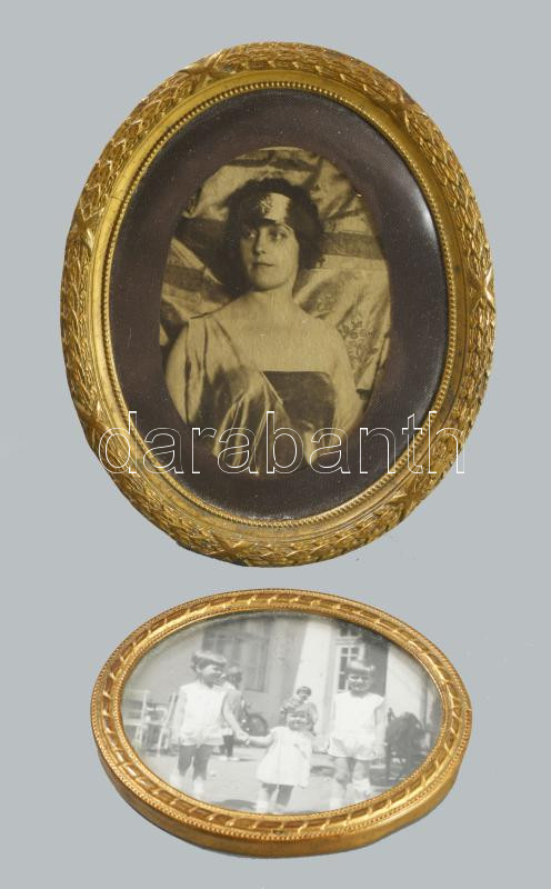 3 darab szecessziós ovális támasztható képkeret, 10x8 cm, 6,5x5,5 cm