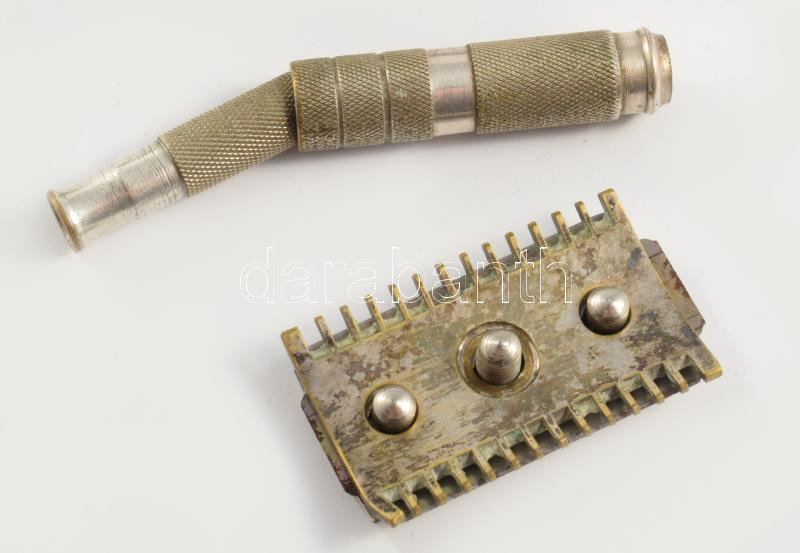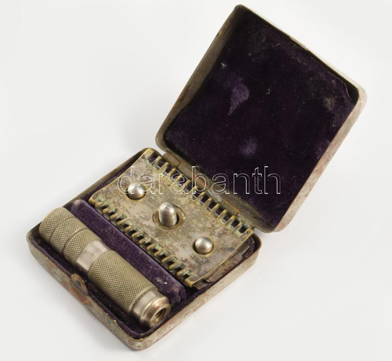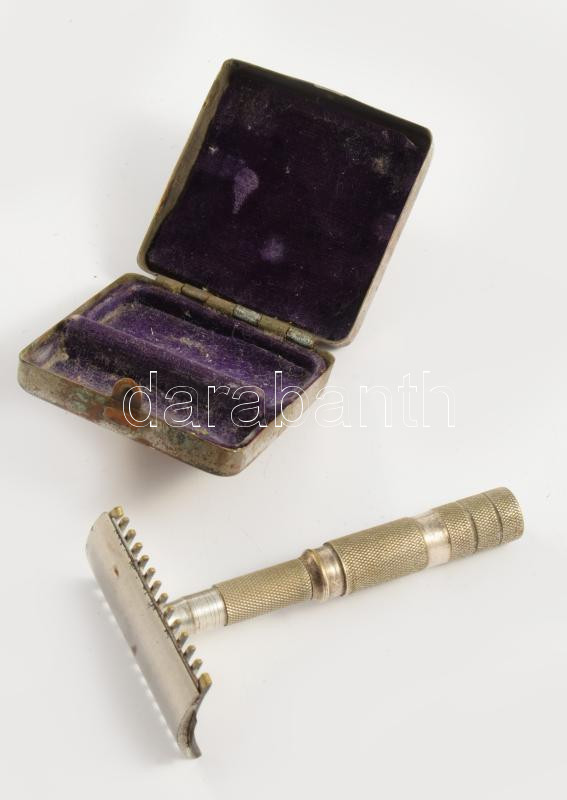 Antik utazó borotva, tokban.