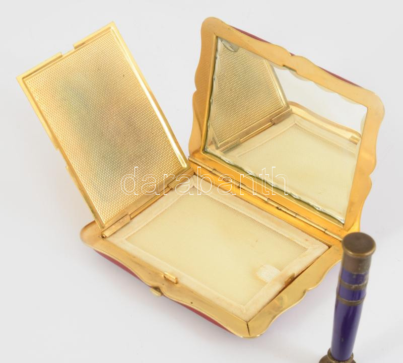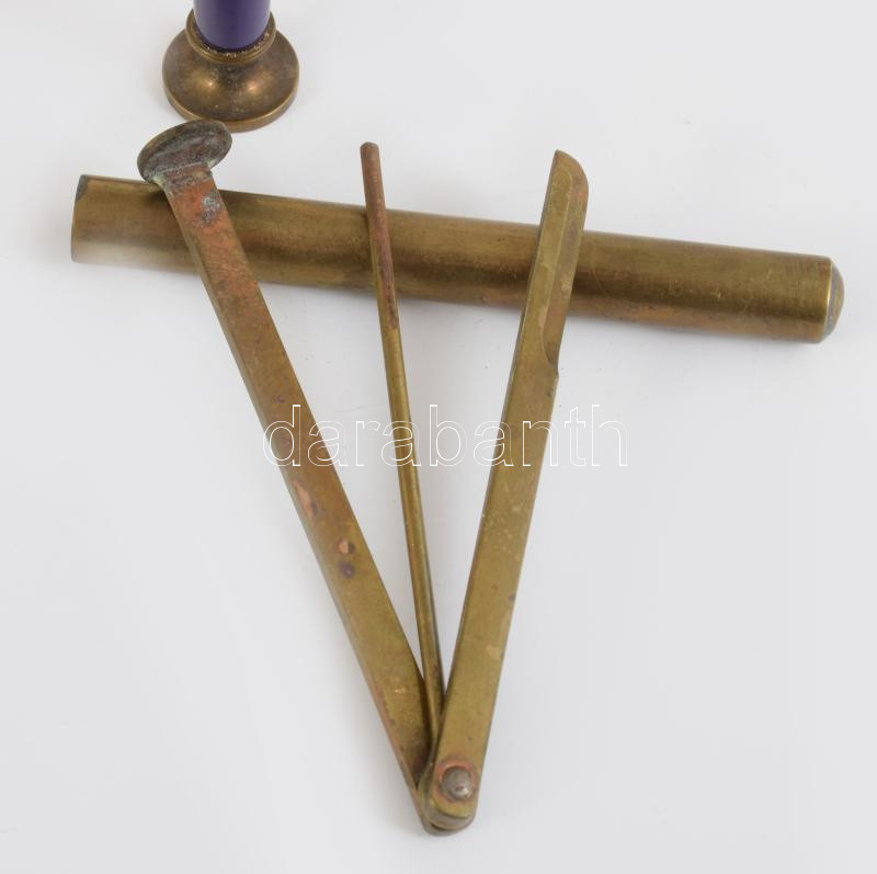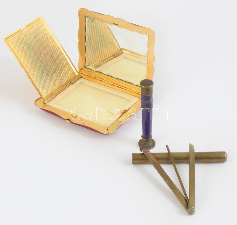 Antik zománcozott csikkelnyomó, pudrié, pipatisztító