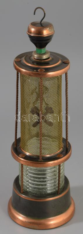 Bányászlámpa alakú italos üveg, m: 33 cm