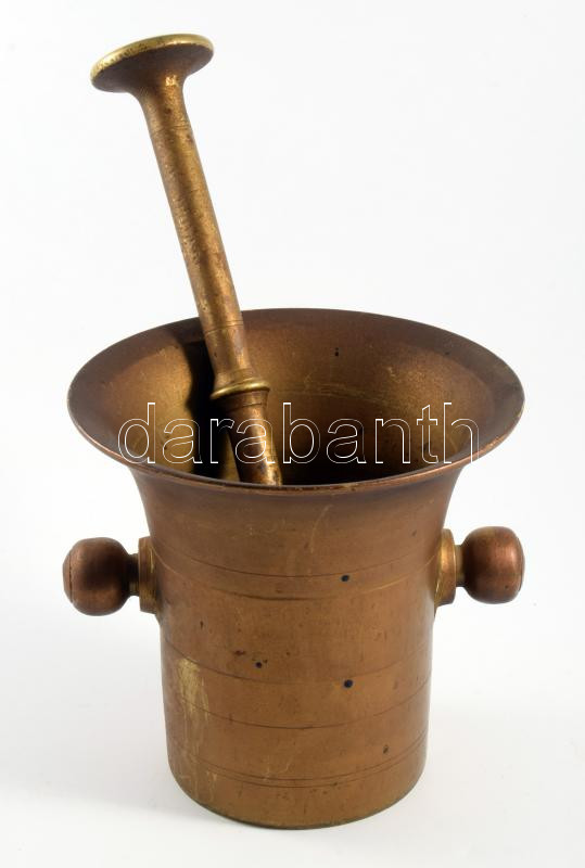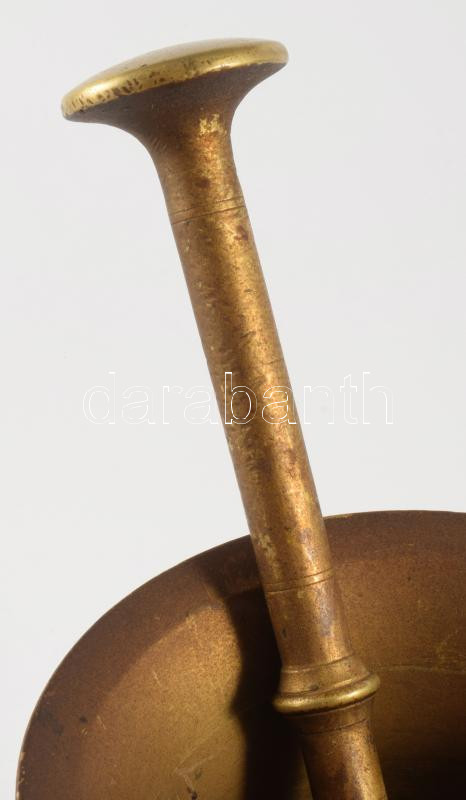 Bronz mozsár, törővel, m: 15 cm, törő h: 28 cm
