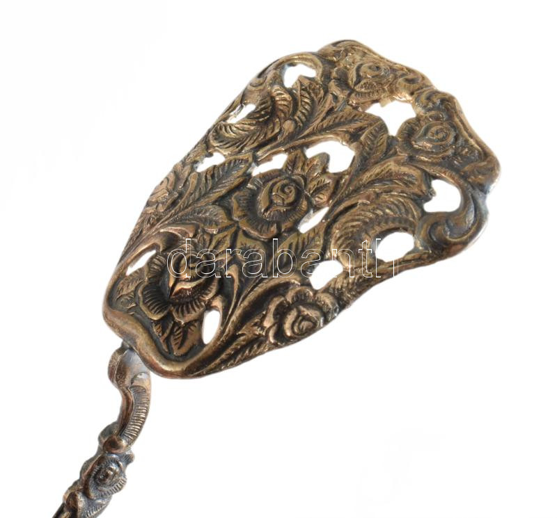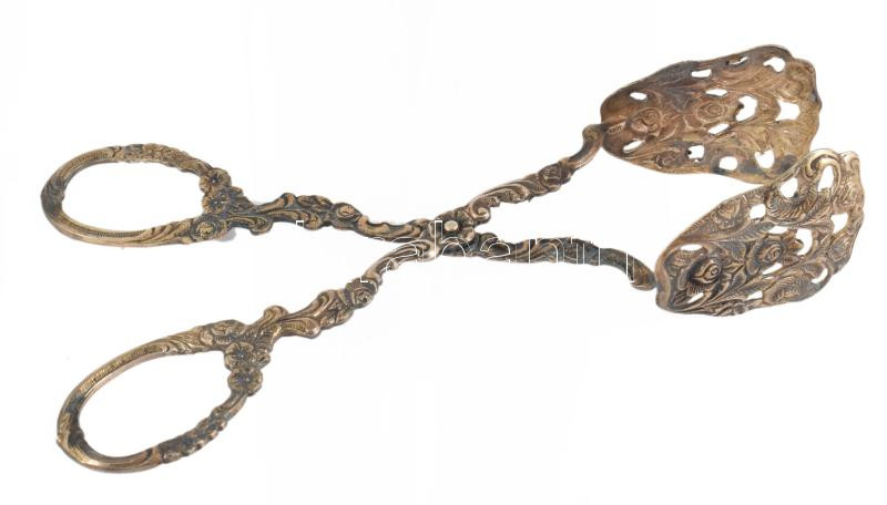 Díszes ezüstözött tortafogó, h: 17 cm