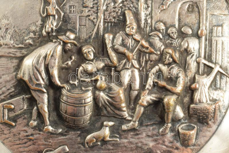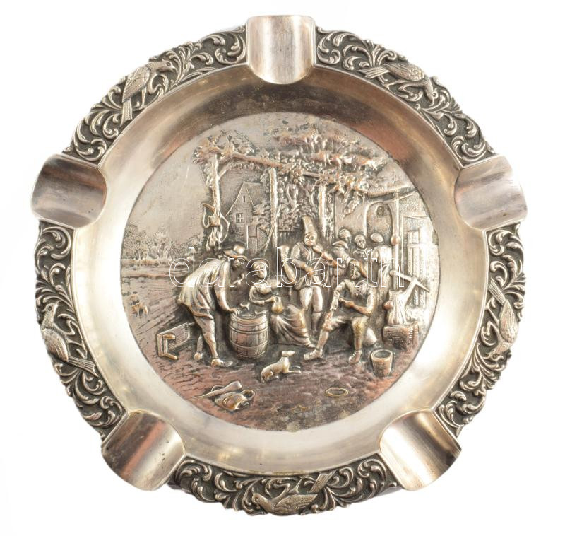 Életkép jelenetes ezüstözött hamuzó, d: 12,5 cm