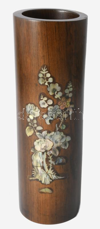 Gyöngyház berakásos fa hengerváza, m. 20,5 cm