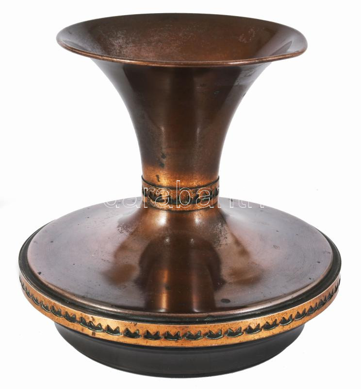 Iparművész réz váza. J. n. kis kopással. d: 19 cm, m: 16 cm