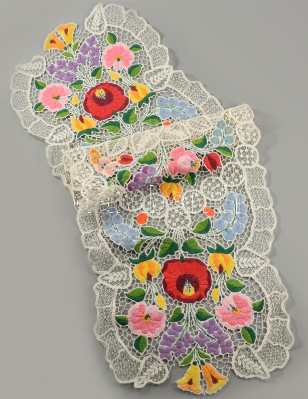 Kalocsai mintás hímzett terítő csipke 90x32 cm